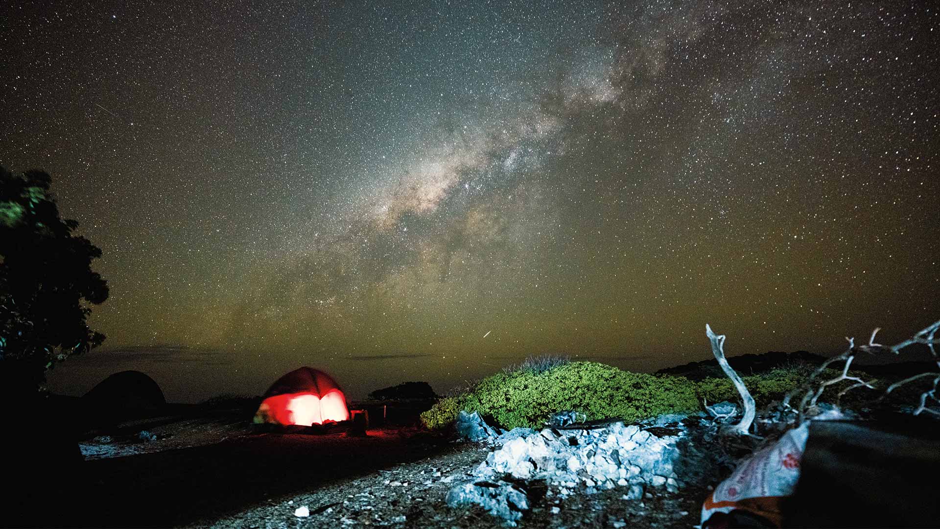 Camp under a starry sky on Aldabra Atoll © Marine Reveilhac